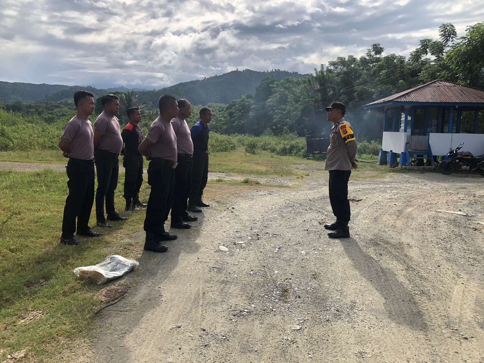 Anggota Polsek Bualemo Sampaikan Pesan Kamtibmas kepada Security PT. IMI