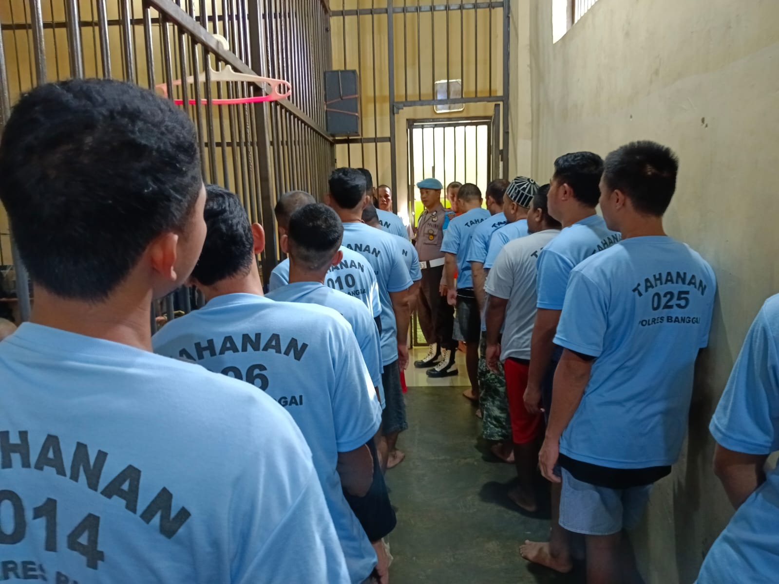 Terkait dengan hal tersebut pada hari Selasa (3/1/2023) pukul 08.00 Wita Anggota SPKT melaksanakan pengecekan diruangan tahanan dengan tujuan selain mengecek jumlah tahanan, juga mengecek barang-barang yang berada didalam ruang tahanan, jumlah tahanan di Rutan Mako Polres Banggai sebanyak 51 orang masing laki-laki 49 orang dan perempuan 2 orang dengan keterangan tahanan Sat Reskrim 13 orang, tahanan Sat Narkoba 17 orang, tahanan titipan jaksa 19 orang, titipan laka lantas 1 orang, dan titipan Polsek Nuhon 1 orang.