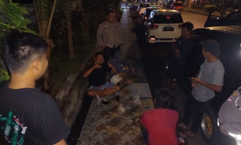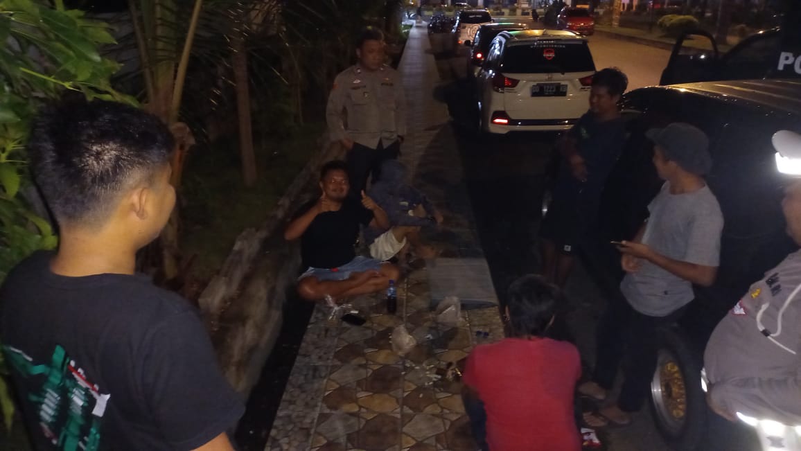 Petugas Patroli Polsek Luwuk melakukan dialogis dengan menyampaikan himbauan kamtibmas kepada sopir online yang sementara singgah istirahat makan malam sambil menunggu orderan penumpang.