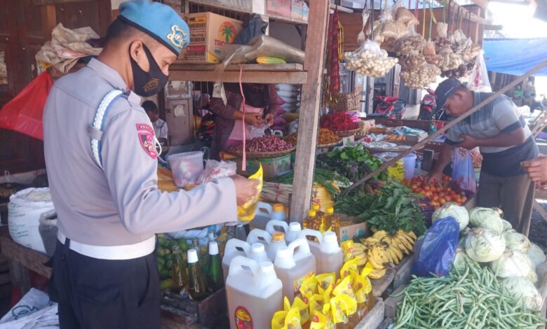 Seperti yang dilakukan aparat Polsek Bunta dengan turun mmenantau dan mengecek stabilitas harga bahan pokok dan ketersediaan minyak goreng di pasar sentral Kecamatan Bunta, Kabupaten Banggai, Senin (18/4/2022).
