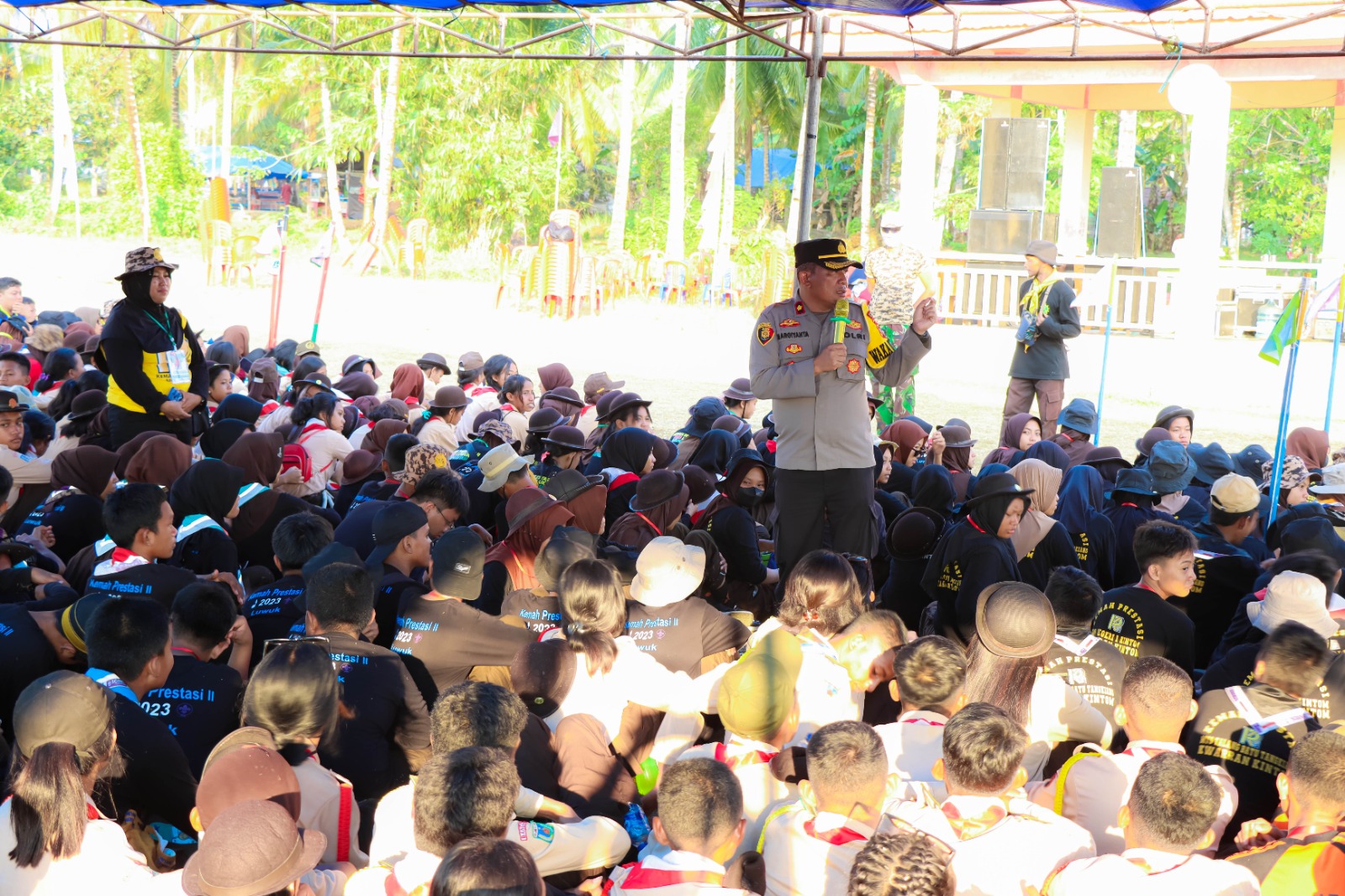Wakapolres Banggai Berikan Materi ke Peserta Pramuka Kemah Prestasi di Desa Boitan