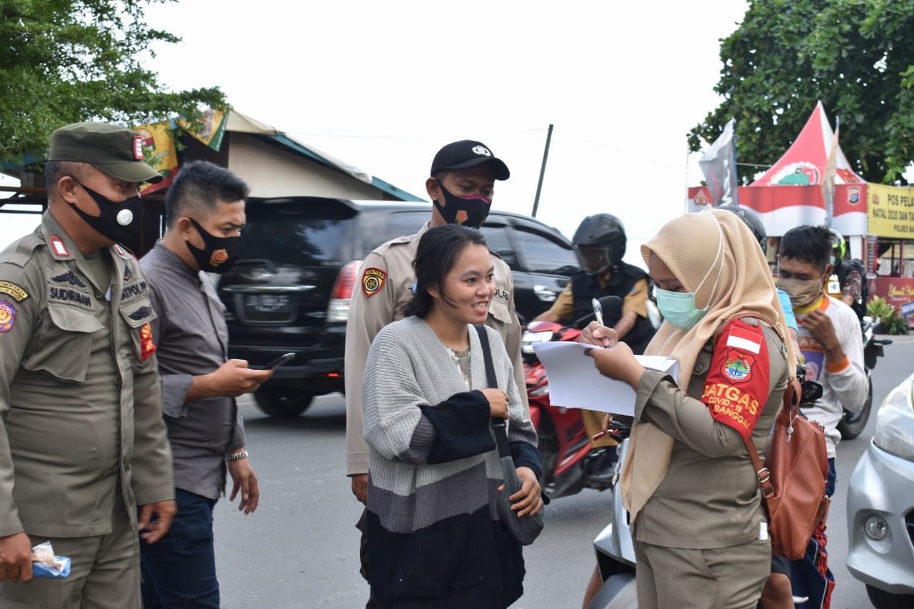Pada Selasa (29/12) personel Polres Banggai, Kodim 1308/LB dan Satpol-PP menggelar pendisiplinan protokol kesehatan di Jalan Moh. Hatta, Kelurahan Maahas, Kecamatan Luwuk Selatan, tepatnya di kompleks wisata kilo meter 5.