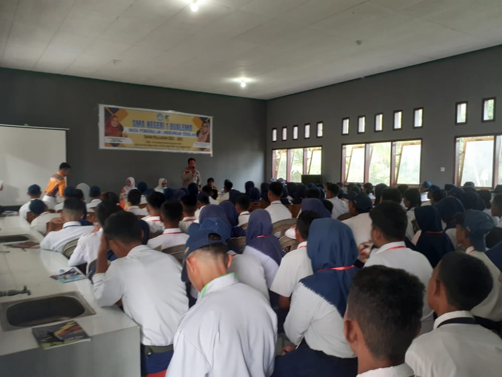 Luwuk.today, Kanit Binmas Polsek Bualemo memberikan penyuluhan kamtibmas tentang bahaya dari Narkotika, Psikotropika, dan Zat Adiktif Berbahaya Lainnya (Napza) kepada para pelajar di SMA Negeri 1 Bualemo, Rabu (6/7/2022).