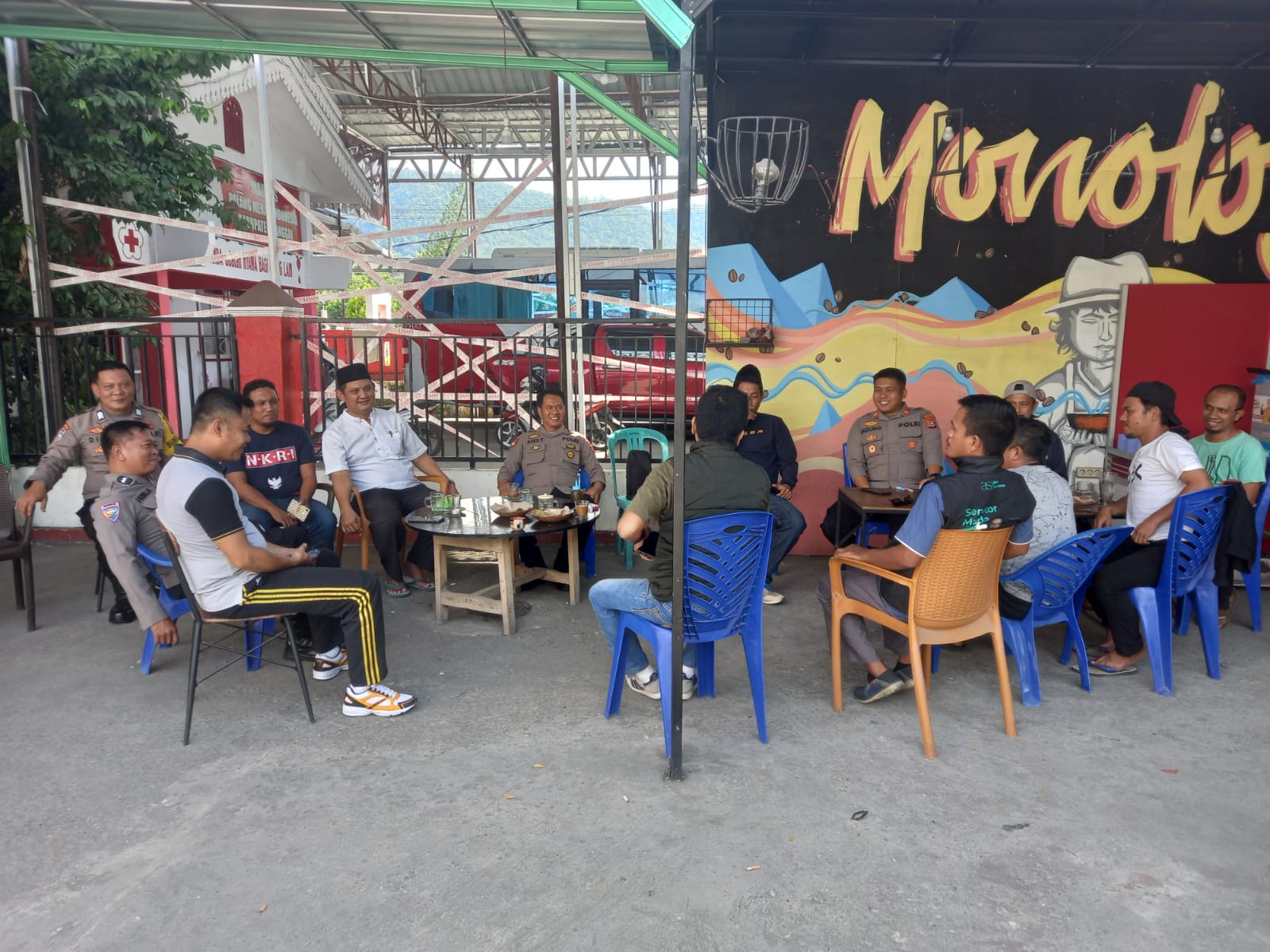 Luwuk.today, Kapolsek Luwuk AKP Agung Lastria Kesuma bersama anggotanya menggelar program Jumat Curhat di Cafe Menolog, Kelurahan Luwuk, Kecamatan Luwuk, Kabupaten Banggai, Jumat (17/3/2023) pagi.