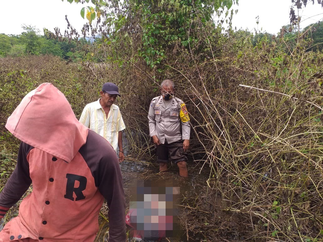 Polsek Bualemo Evakuasi Mayat Pria yang Ditemukan Mengambang di Rawa-rawa
