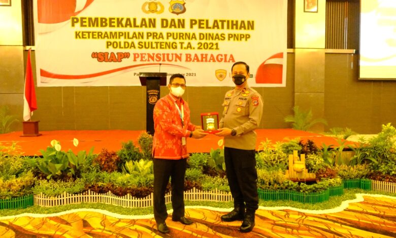 Pembekalan dan pelatihan keterampilan pra purna dinas PPNP Polda Sulteng tahun anggaran 2021 mengangkat tema “Siap Pensiun Bahagia”, Sehat, Ikhlas, Aktifitas bermanfaat dan Produktif, Jelas Kapolda Sulteng