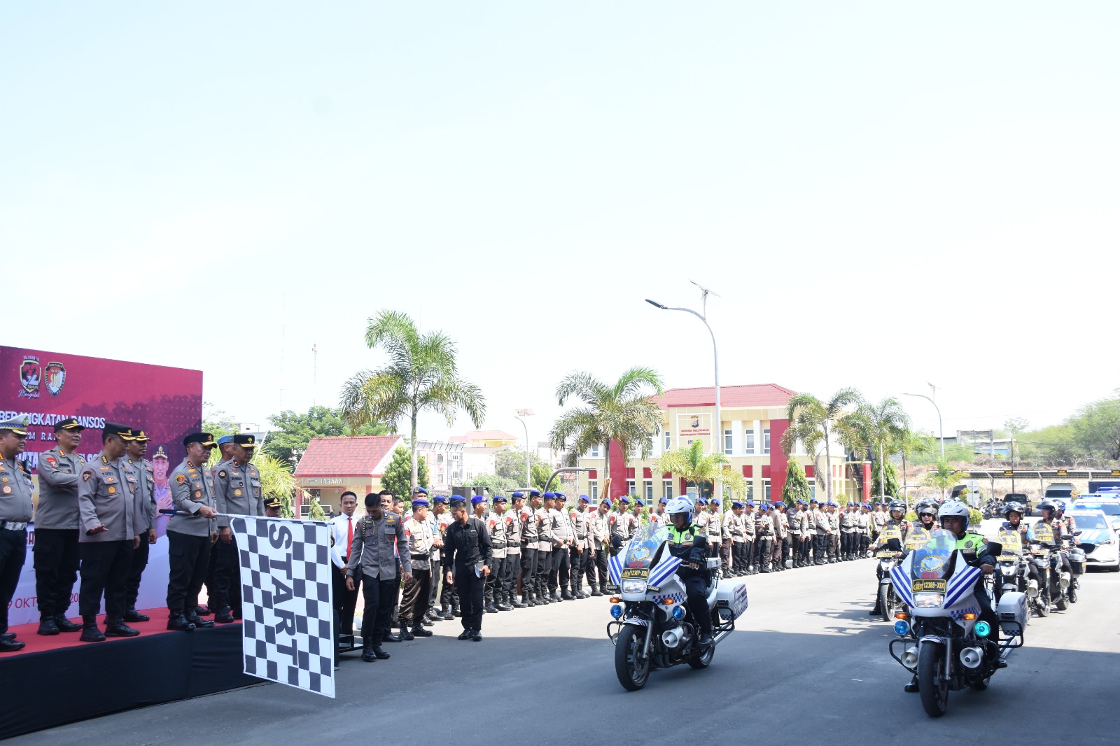 Luwuk.today, Palu, Kepala Kepolisian Daerah (Kapolda) Sulawesi Tengah (Sulteng) Irjen Pol Dr Agus Nugroho, SIK, SH, MH menghadiri sekaligus melepas pendistribusian paket sembako dalam rangka Bakti Sosial (Baksos) Angkatan 91 ke wilayah Polres dan Polresta jajaran, Senin 09/10/2023 pagi, didepan Mapolda Sulteng.