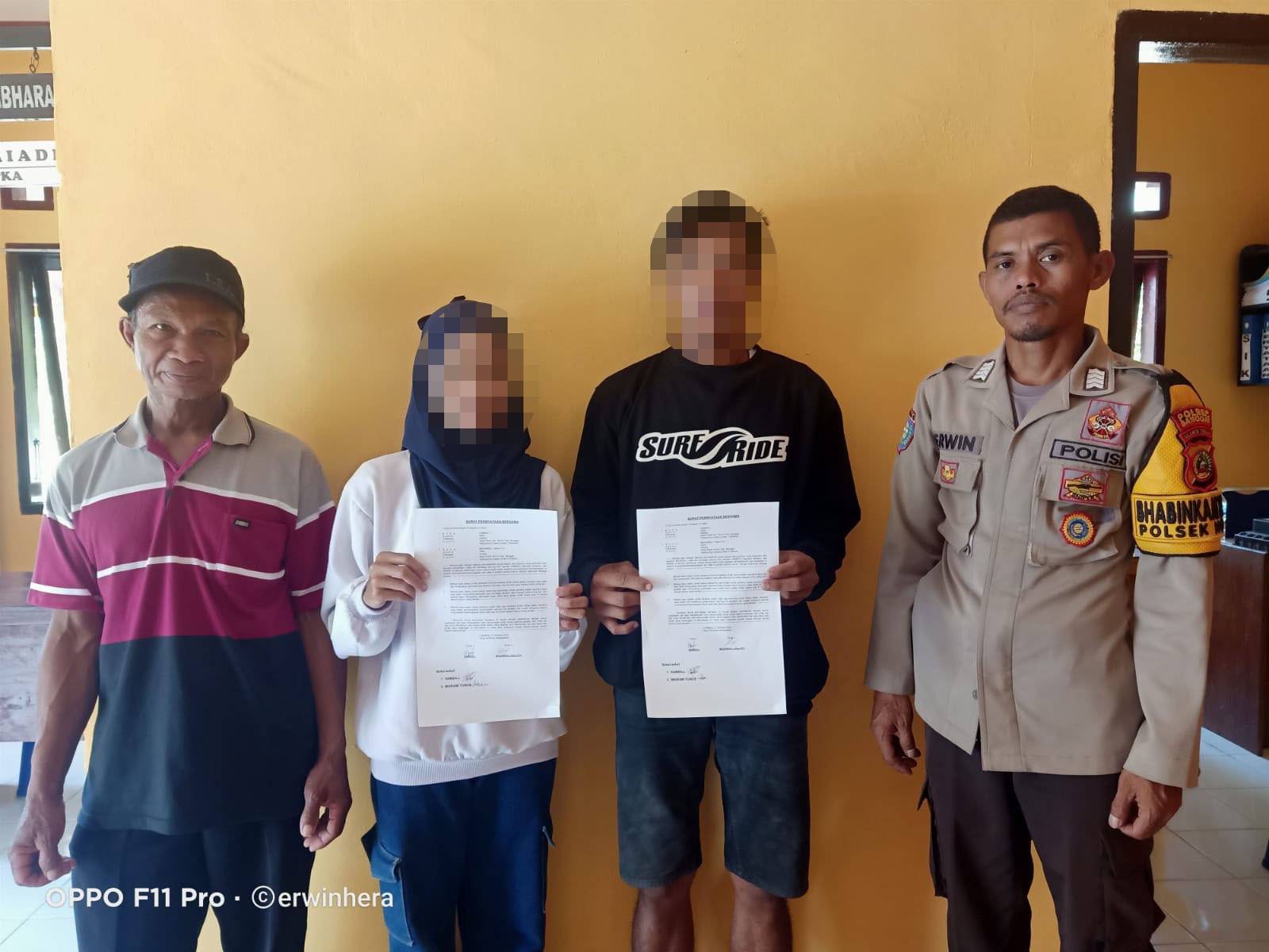 Usai mendapatkan laporan, Bhabin kemudian mengundang kedua belah pihak ke Mako Polsek Nuhon untuk dipertemukan.