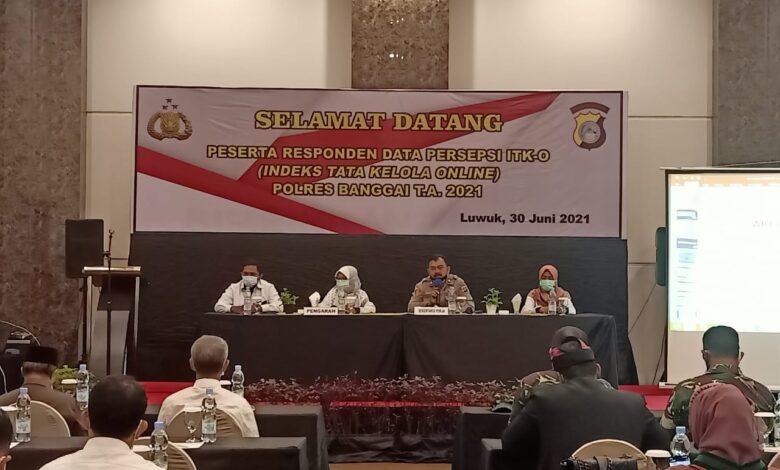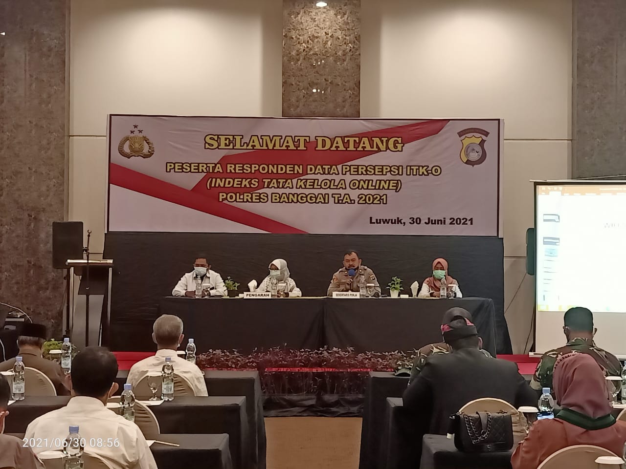 Luwuk.today, Polres Banggai menggelar kegiatan pengumpulan data presepsi penilain Indeks Tata Kelola Online (ITK- O) tahun 2021, di swiss belhotel Luwuk, Rabu (30/6/2021). Kegiatan tersebut dibuka oleh Kepala Bagian Perencanaan (Kabag Ren) Polres Banggai Kompol Salmon Enggeleti S.Kom.