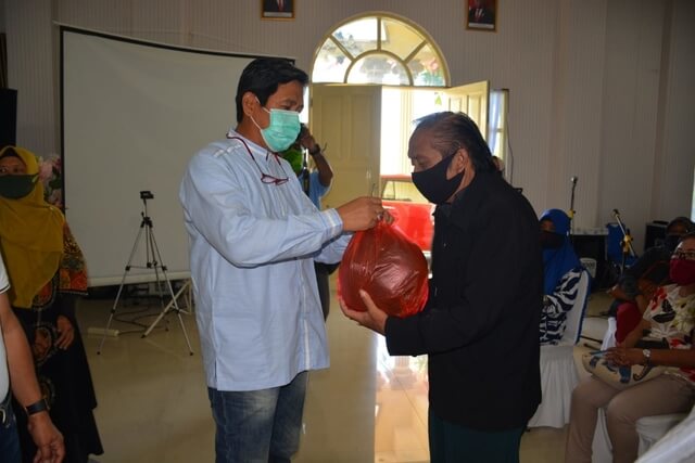Luwuk Today, Luwuk – Bupati H. Herwin Yatim bersama Wakil Bupati Banggai H. Mustar Labolo, Menghadiri kegiatan penyerahan insentif dan bantuan sembako kepada 37 penerima Lanjut Usia (LANSIA), bertempat diruangan pendopo rumah jabatan Wakil Bupati Banggai Kelurahan Tombang Permai, Kecamatan Luwuk Selatan, Sabtu, (23/5/2020).