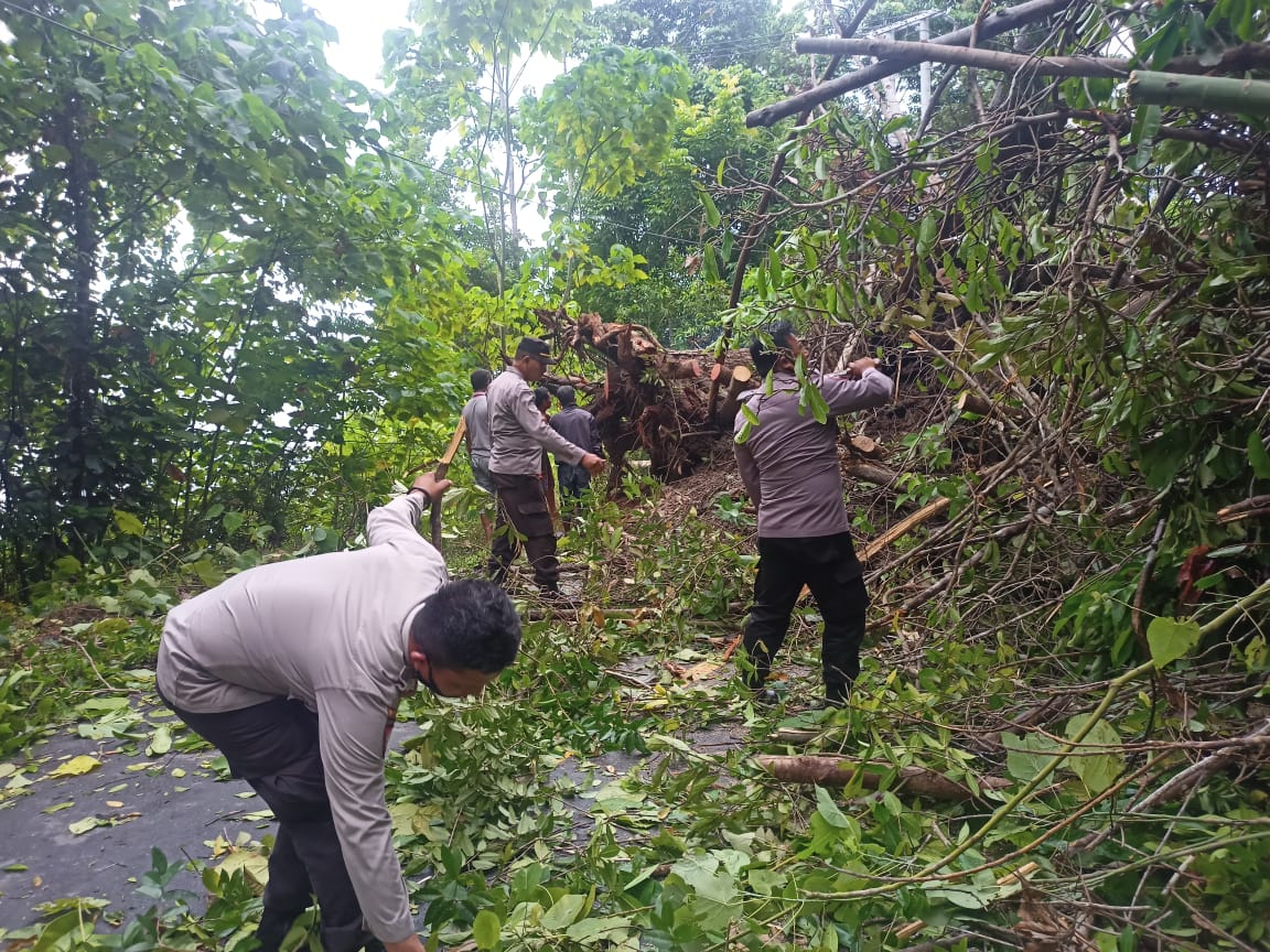 Aksi Polisi Berjibaku Bersihkan Material Longsor Tutupi Jalan di Bunta