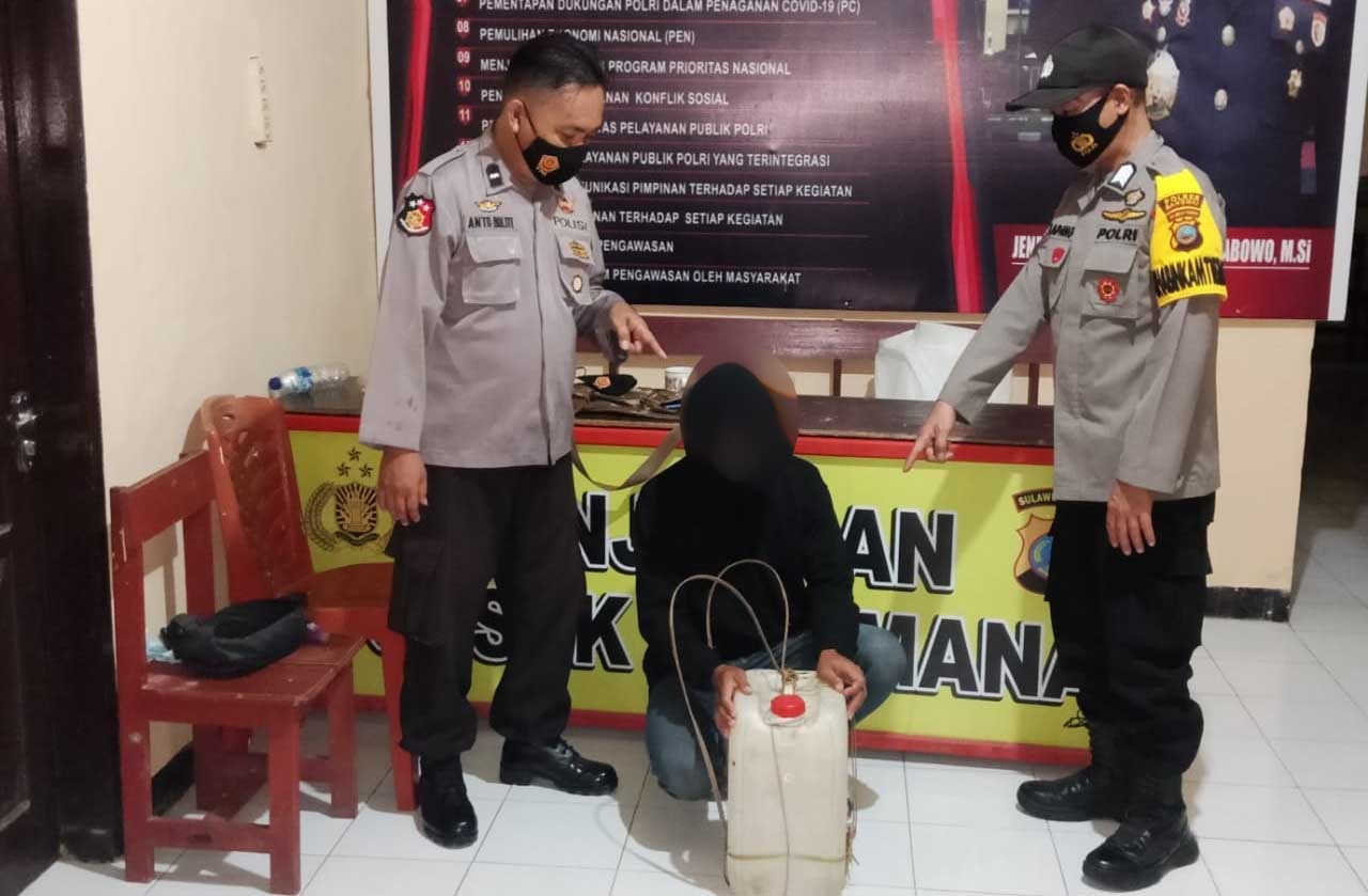 Pemuda asal Kelurahan Karaton, Kecamatan Luwuk, Kabupaten Banggai ini diamankan lantaran terciduk oleh petugas mengakut puluhan liter minuman keras (miras) tadisional jenis cap tikus.