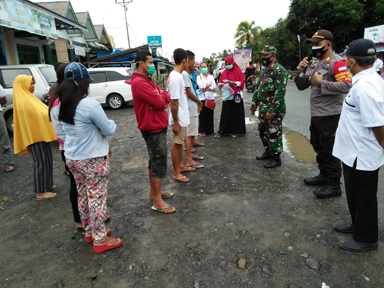 Pada Selasa (26/1/2021), aparat gabungan Polsek Toili, Koramil, Pemerintah Kecamatan dan Puskesmas melakukan pendisiplinan protokol kesehatan di Perempatan Pasar Unit 11 Desa Mekarkencana, Kecamatan Toili.