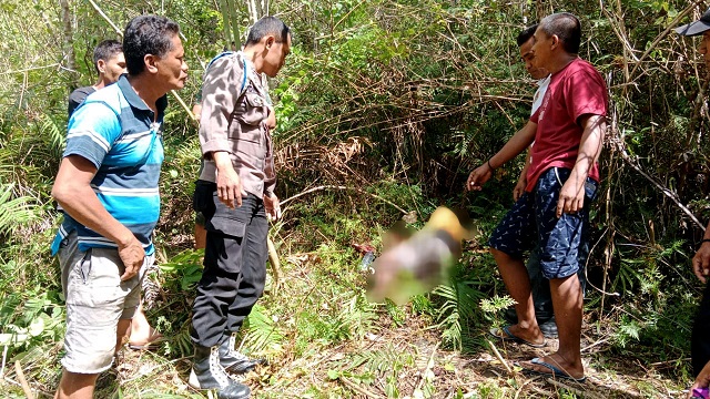 Aparat Polsek Balantak Evakuasi Mayat Seorang Pria Paruh Baya Diduga Minum Racun di Perkebunan Warga