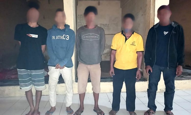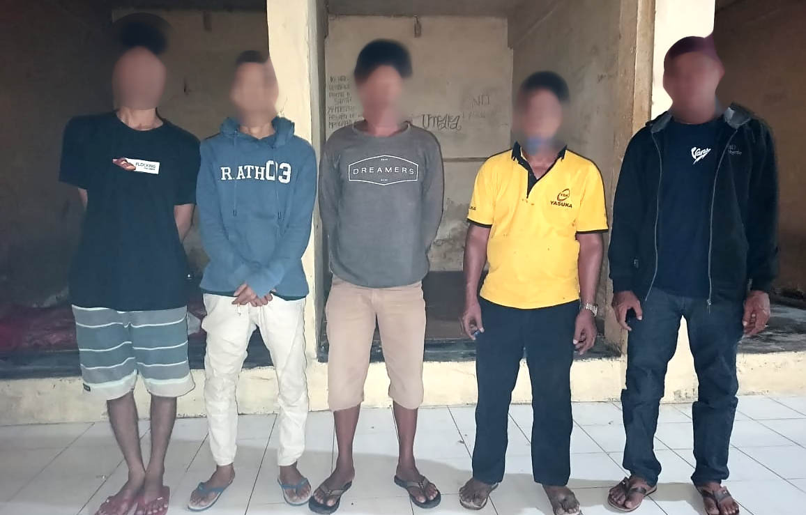 Kelima pria yang diamankan itu berinisial AB (31), HF (50), VA (25) warga Kecamatan Luwuk dan LA (60) warga Kabupaten Banggai Laut.