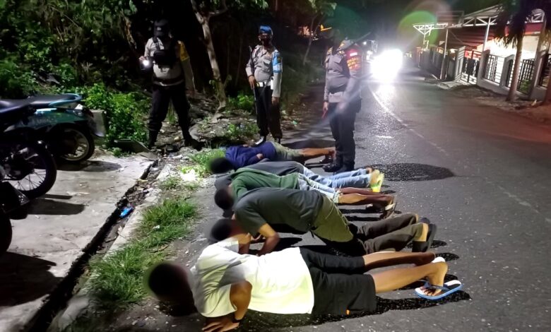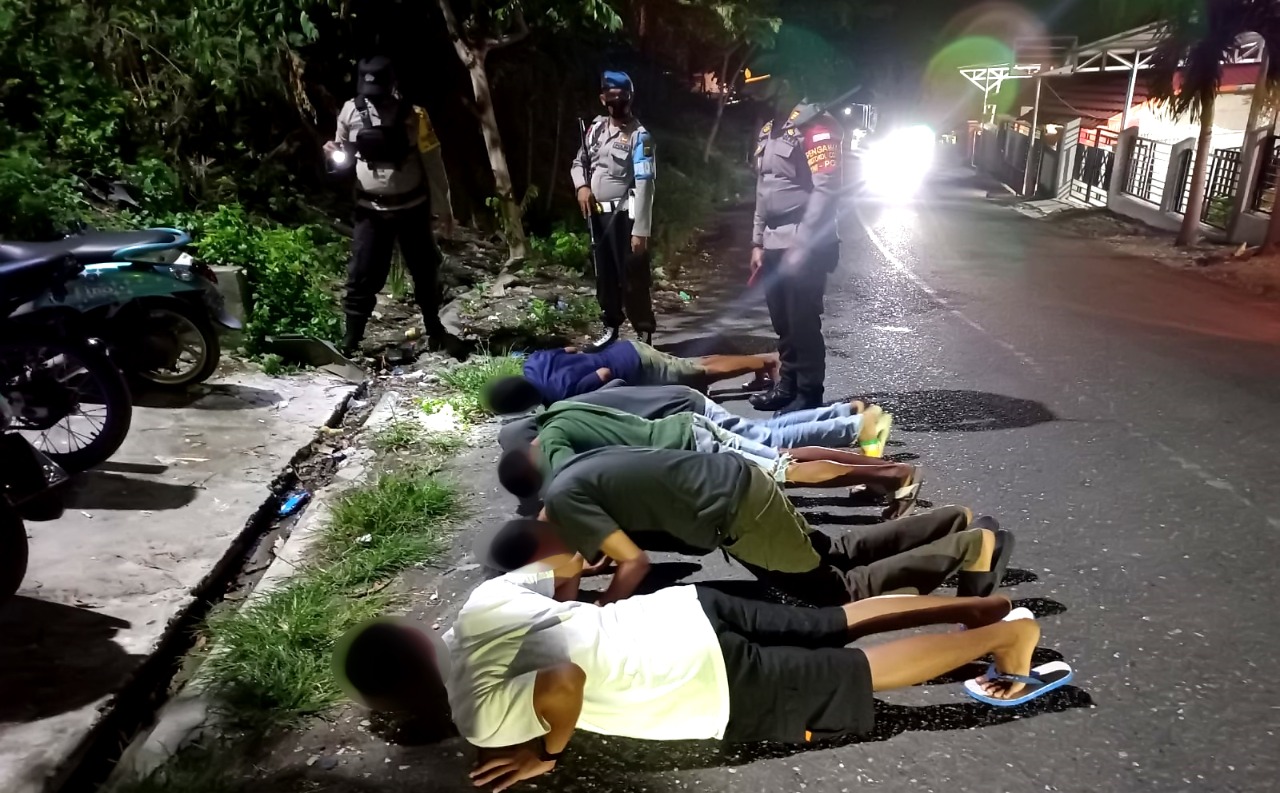 Mereka langsung diberikan pembinaan dan tindakan fisik berupa push up sebagai upaya memberikan efek jera agar tidak mengulangi perbuatannya kembali.