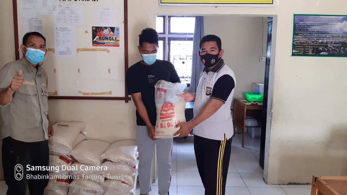 Babinkamtibmas Polsek Luwuk Salurkan 31 Pajet Bantuan Beras PPKM di Tanjung Tuis