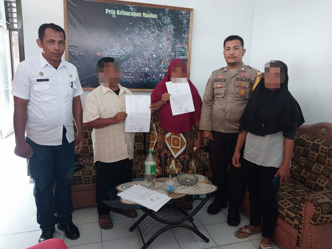 Atas pengaduan tersebut, Bhabinkamtibmas bersama Kelurahan Maahas memediasi dengan menghadirkan para pihak terlibat, bertempat dikantor Kelurahan Maahas.