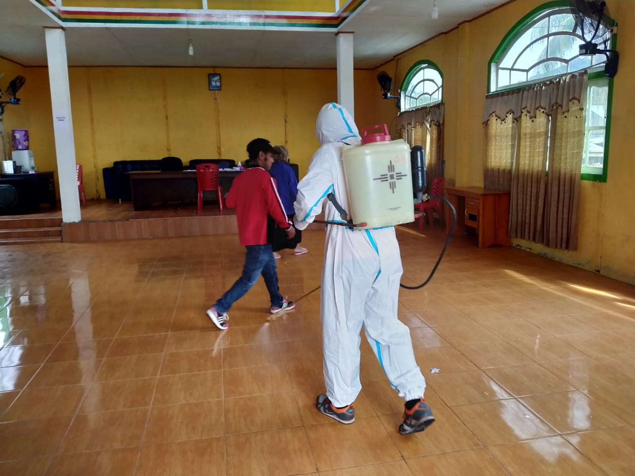 Penyemprotan yang dilakukan bersama Mahasiswa KKN Universitas tompotika Luwuk angkatan XXVIII tahun 2021 itu sebagai pencegahan serta memutus mata rantai penyebaran Covid-19.