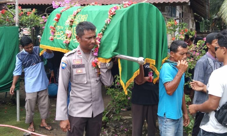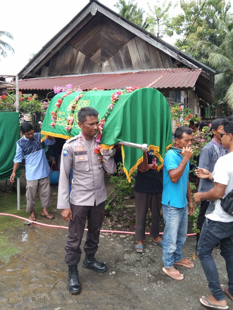 Kapolsek Toili Iptu Nanang Afrioko SH, MH, mengungkapkan, selain melayat ke rumah duka, Aipda Sugeng juga bahkan memikul keranda jenazah almarhum hingga kepemakaman.