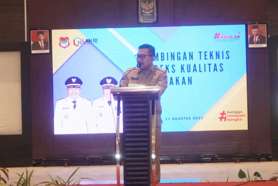 Luwuk.today, Bupati Banggai Ir. Amirudin, M.M, Membuka Secara Resmi Acara Bimbingan Teknis Indeks Kualitas Kebijakan di Lingkungan Pemerintah Kabupaten Banggai Tahun 2023 yang diselenggarakan Bagian Organisasi Tata Laksana Setda Banggai, Bertempat di Hotel Estrella, Kelurahan Tanjung Tuwis, Kecamatan Luwuk Selatan, Selasa (22/8/2023).