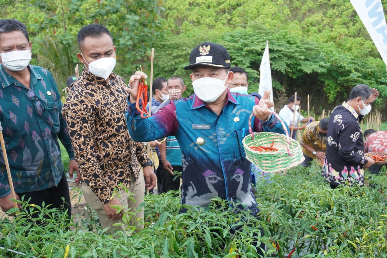 Bupati Amirudin Panen Perdana Cabe Merah dan Tomat Program Family Farming di Desa Lumpoknyo