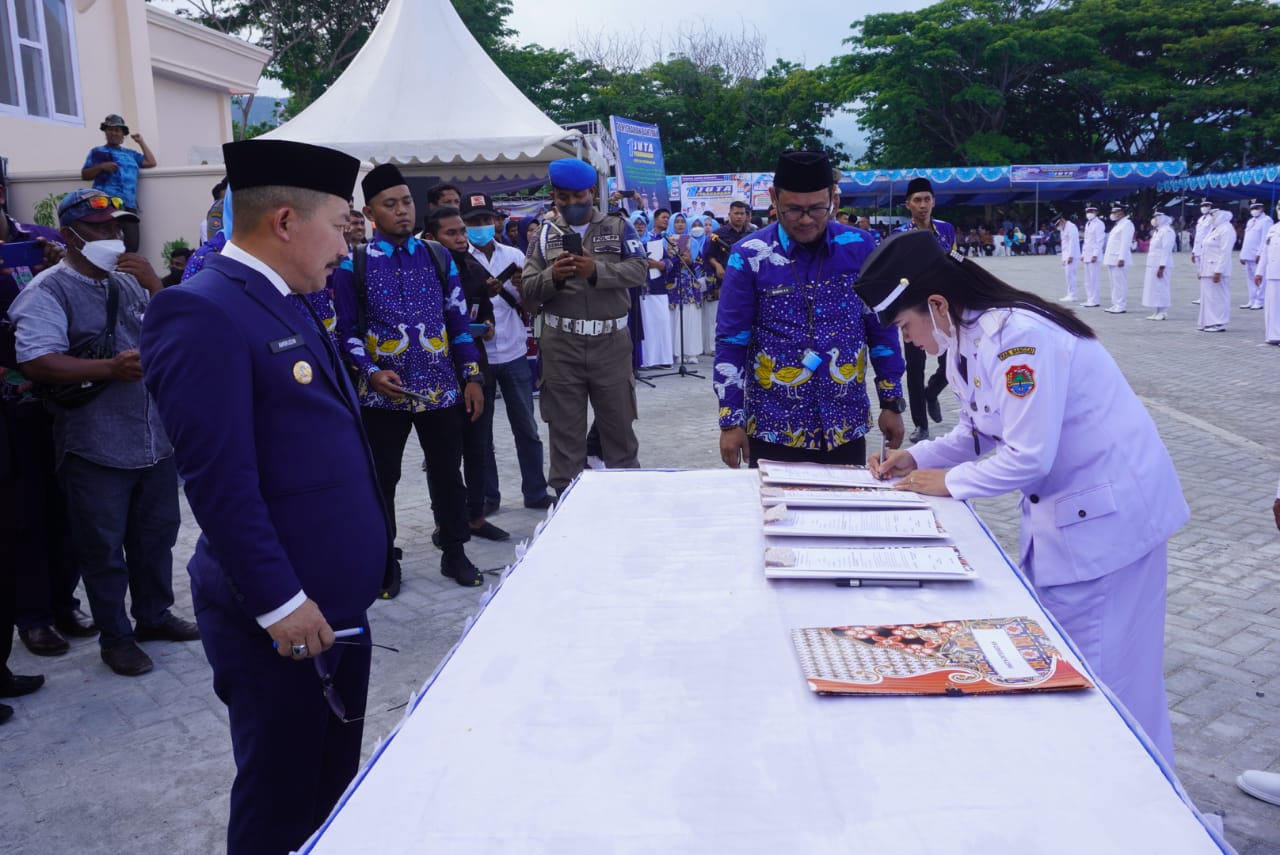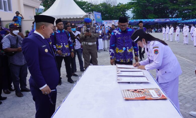 Usai melantik dan mengambil sumpah pertama-tama dilakukan Penandatanganan Fakta Integritas Secara Simbolis, Kemudian dilanjutkan dengan Penyematan Tanda Jabatan Kepala Desa Terpilih Masing-Masing