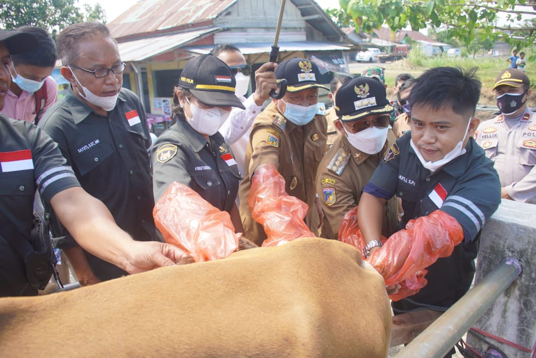 Luwuk.today, Bupati H. Amirudin bersama Wakil Bupati Banggai H. Furqanuddin menghadiri Kegiatan Penyerahan Bantuan Hibah Ternak Sapi Bali, UPSUS Inseminasi Buatan dan PKB, serta Pengobatan Ternak, oleh Dinas Peternakan dan Kesehatan Hewan Kabupaten Banggai, bertempat di Pasar Ternak Desa Tirta sari Kecamatan Toili, pada Senin siang (25/10/2021).