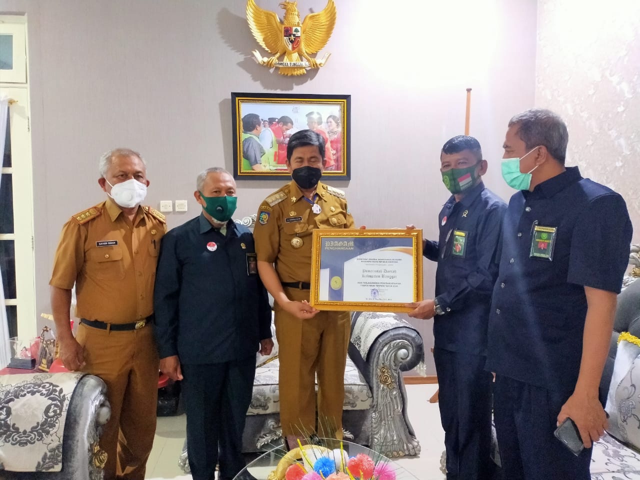 Bupati Banggai Dr. Ir. H. Herwin Yatim, MM Senin (7/12/2020), menerima tamu dari Pengadilan Agama Kabupaten Banggai dalam rangka silaturahim sekaligus menyerahkan piagam penghargaan dari Direktoral Jendral Badan Peradilan Agama Mahkamah Agung RI kepada Pemerintah Daerah Kabupaten Banggai Atas Terlaksananya Program Kegiatan Itsbat Nikah Terpadu Tahun 2020.