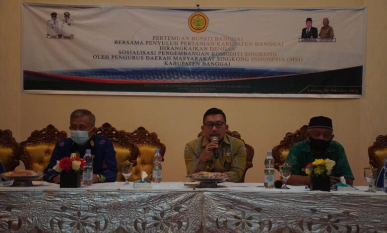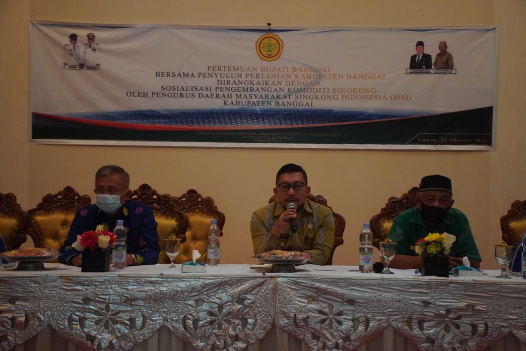 Luwuk.today, Bupati H. Amirudin didampingi Wakil Bupati Banggai H. Furqanuddin melakukan Pertemuan bersama Penyuluh Pertanian Kab. Banggai dirangkaikan dengan sosialisasi pengembangan komoditi singkong oleh pengurus daerah Masyarakat Singkong Indonesia (MSI) Kab. Banggai, bertempat di Aula dinas TPHP Kab. Banggai, Kamis (21/10/2021).
