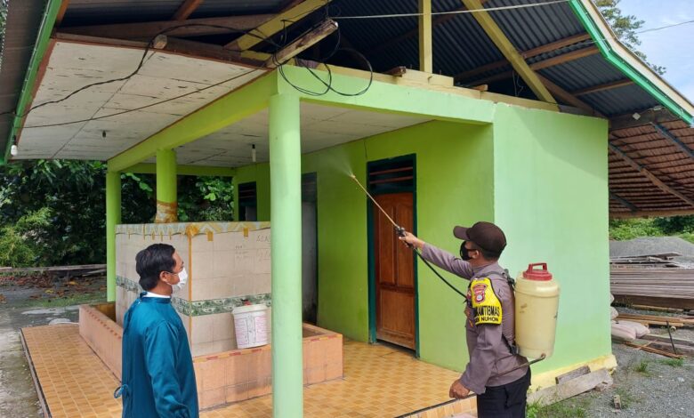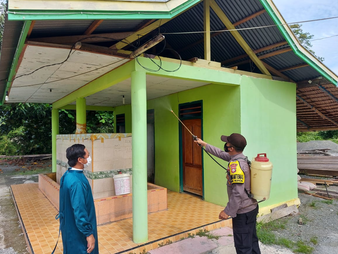 Cegah Covid-19, Polsek Nuhon Semprotkan cairan Disinfektan di sejumlah Rumah Ibadah