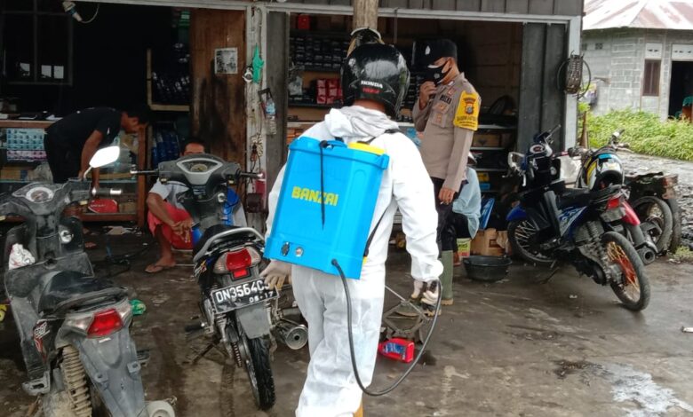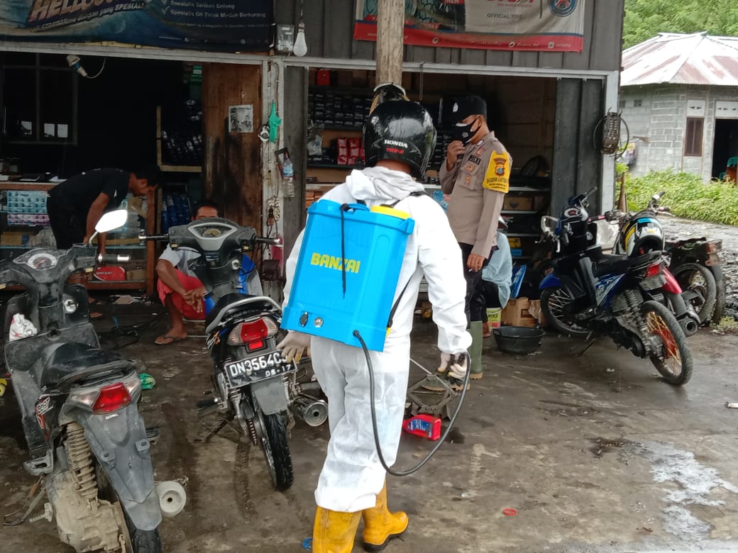 Cegah Covid-19, Polsek Toili Lakukan Penyemprotan disinfektan di Fasilitas umum