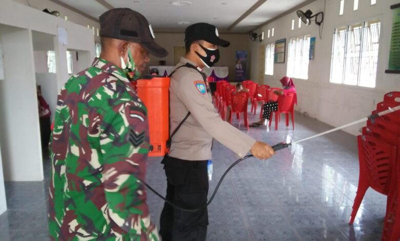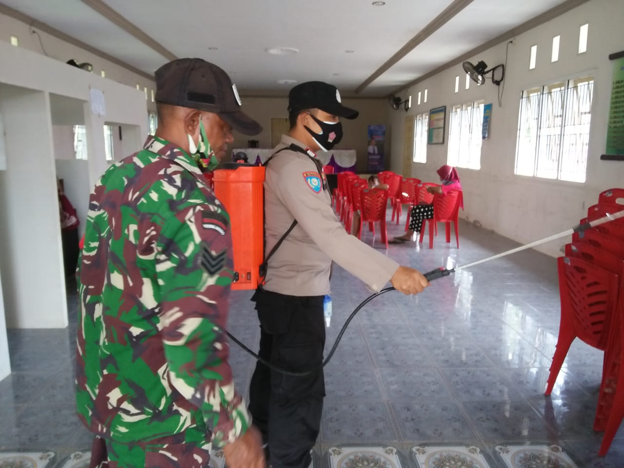 Cegah Covid-19, TNI-Polri di Toili Lakukan Penyemprotan Disinfektan di Ruang Publik