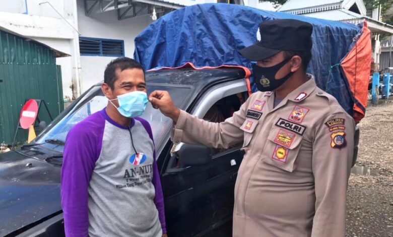 Cegah Penyebaran Covid-19, Polisi Bagikan Masker Gratis di Pelabuhan Rakyat Luwuk