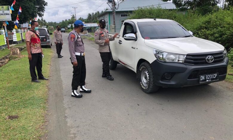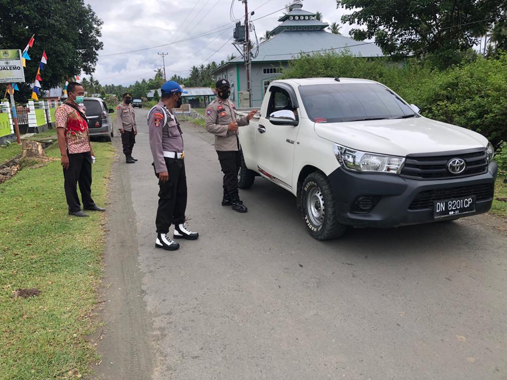 Luwuk.today, Dalam rangka penegakan disiplin protokol kesehatan (prokes) guna mencegah penularan wabah Covid-19, Polsek Bualemo melaksanakan operasi yustisi yang digelar di Jalan Trans Sulawesi, Desa Bima Karya, Kecamatan Bualemo, Kabupaten Banggai, Kamis (23/9/2021).