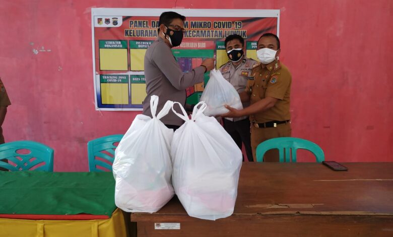 Cek Posko PPKM, Kapolres Banggai Serahkan Bansos untuk warga terdampak covid-19