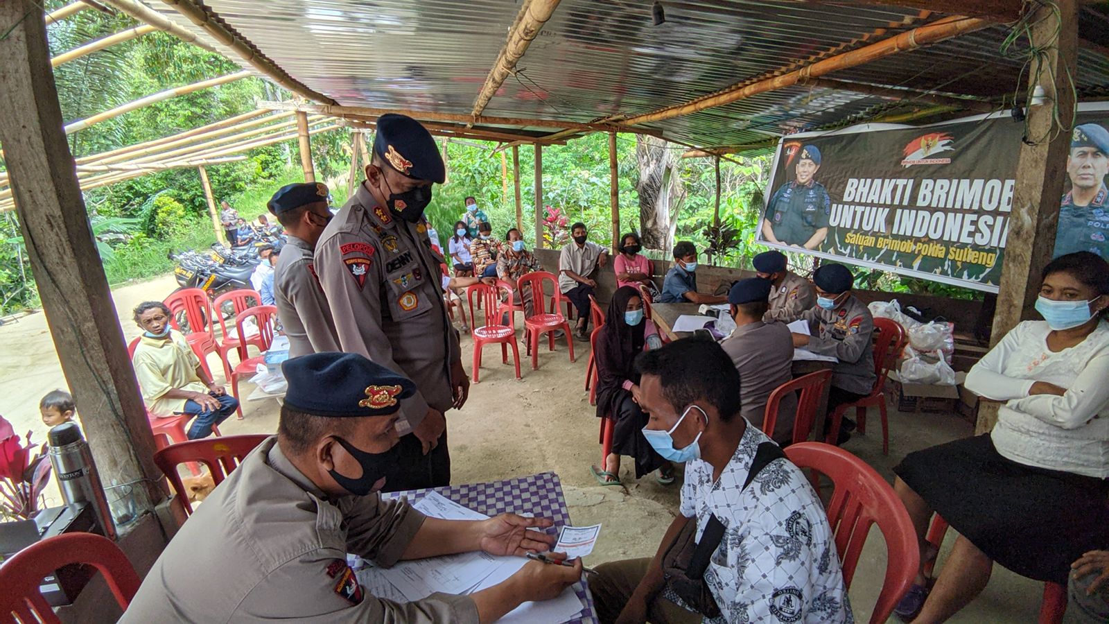 Luwuk.today, Palu, Sulteng – Setelah sukses menggelar gerai Vaksinasi di Dusun IV Raranggonau, Desa Pombewe, Kabupaten Sigi, Satuan Brimob Polda Sulawesi Tengah (Sulteng) kembali membuka gerai vaksinasi Covid-19 bagi warga di wilayah terpencil, Minggu (12/12/2021).
