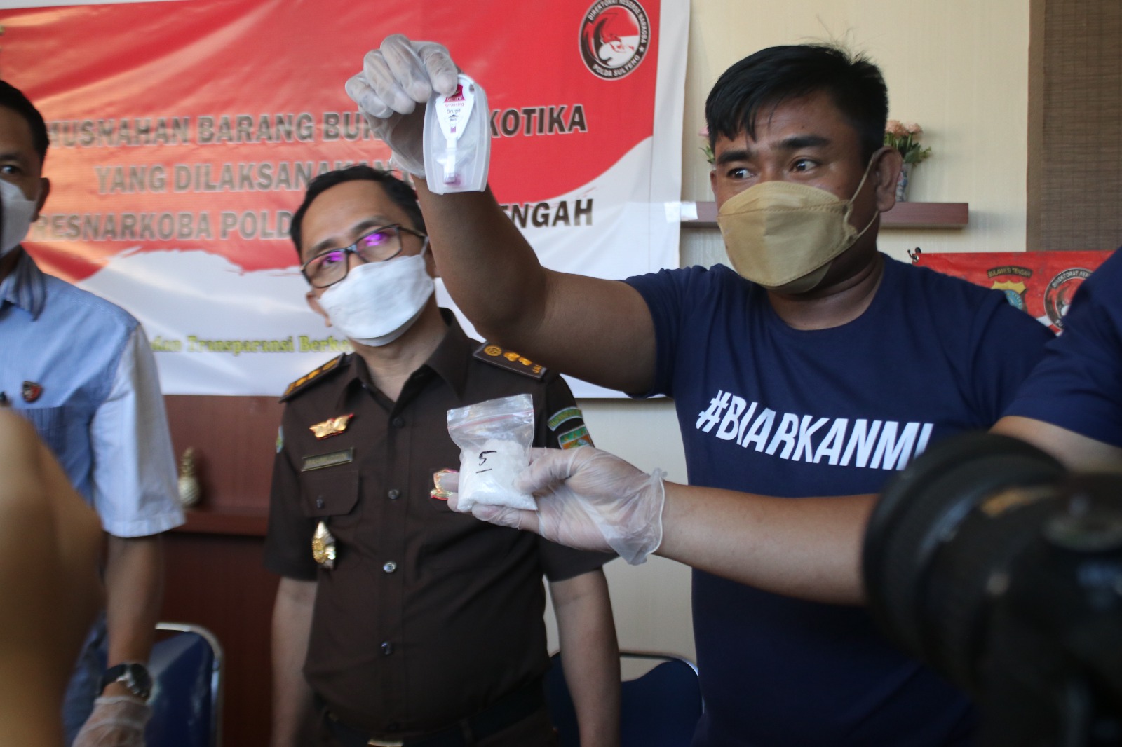 Dirresnarkoba Polda Sulteng diwakili Kabag Bin Opsnal (KBO) Ditresnarkoba AKBP Pradipta Mahayana memimpin pelaksanaan pemusnahan barang bukti yang disita dari 4 kasus yang sementara ditanganinya dengan disaksikan oleh perwakilan Kajati Sulteng, Pengadilan Tinggi Sulteng, Pejabat Utama dan penasehat hukum pelaku.