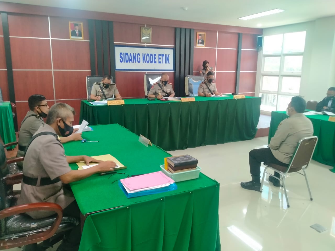 Persidangan Komisi Kode Etik Profesi Polri yang memeriksa dan mengadili Iptu IDGN yang saat ini bertugas di yanma Polda Sulteng digelar di ruang sidang Kode Etik Bidang Profesi dan Pengamanan (Bidpropam) Polda Sulteng, Sabtu (23/10) pagi.