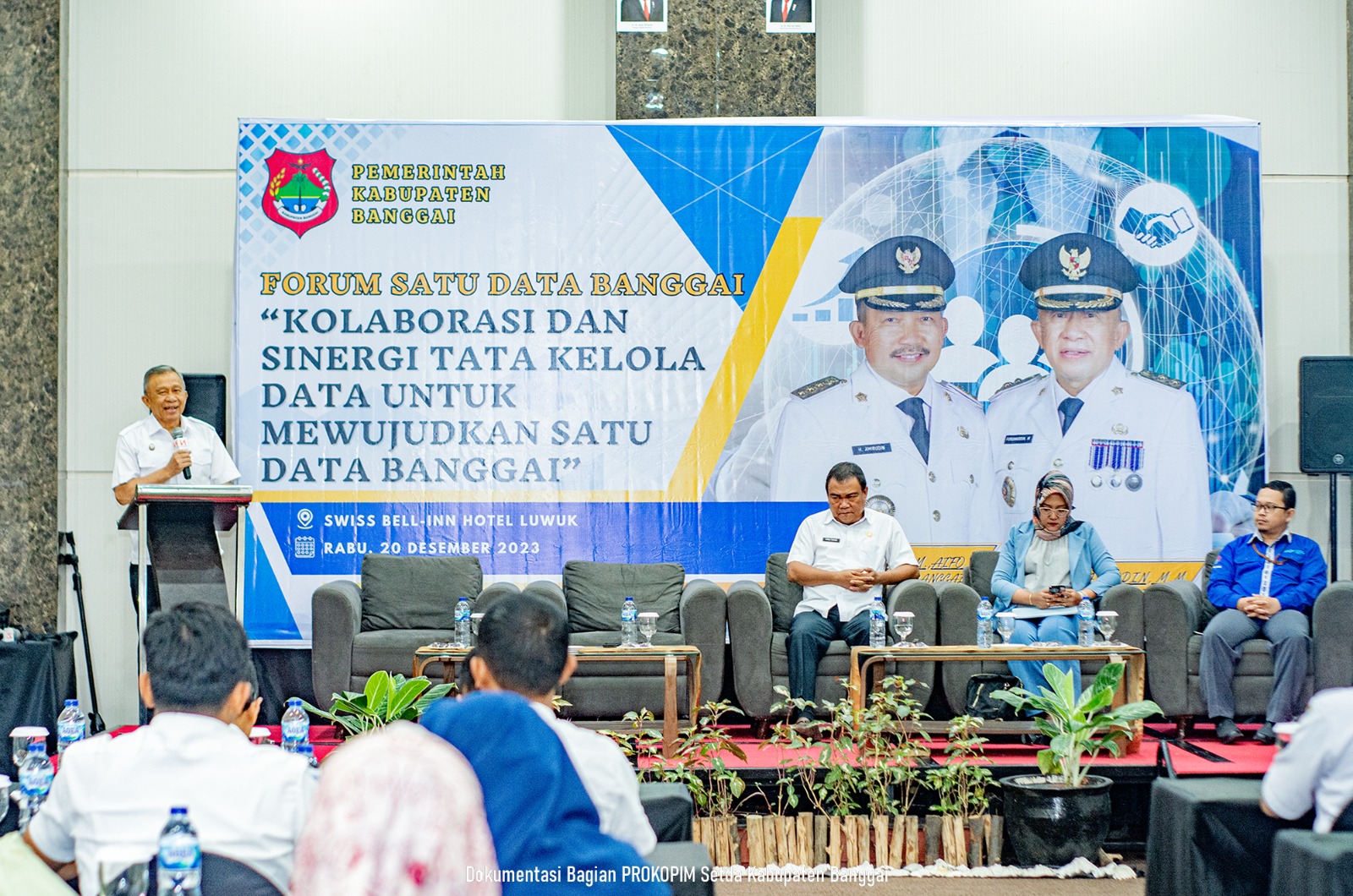 Bupati Banggai Ir. H. Amirudin, M.M. melalui sambutan tertulisnya yang dibacakan Wakil Bupati H. Furqanuddin Masulili menyebutkan, bahwa kunci keberhasilan pembangunan salah-satunya adalah data yang berkualitas. Forum Satu Data Banggai ini dapat menghasilkan basis data yang akurat, terpadu, terpusat dan terintegrasi, sehingga data yang terpublikasi merupakan data valid, yang tentunya sebelumnya perlu dievaluasi dan divalidasi.