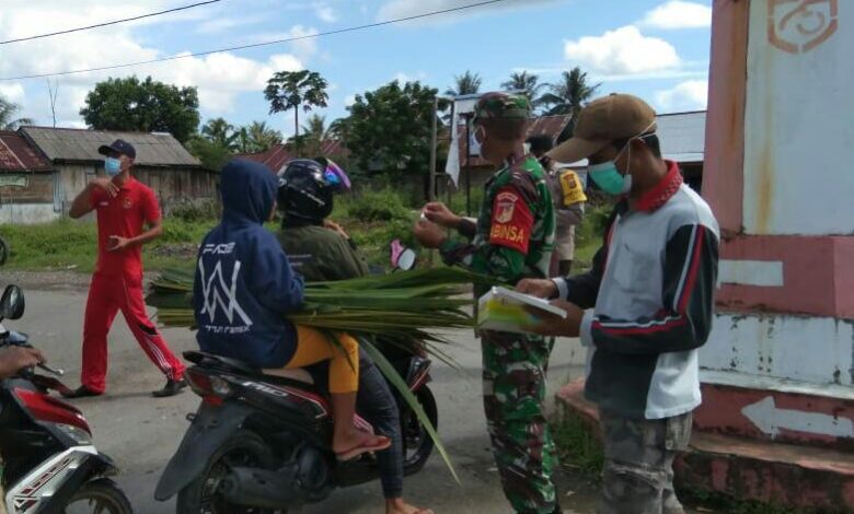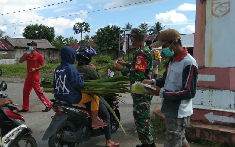 Luwuk.today, Aparat gabungan TNI-Polri bekerja sama petugas PPKM Desa Sumber Harjo Kecamatan Moilong, Kabupaten Banggai melakukan upaya-upaya pencegahan penyebaran Covid-19, Kamis (22/7/2021).
