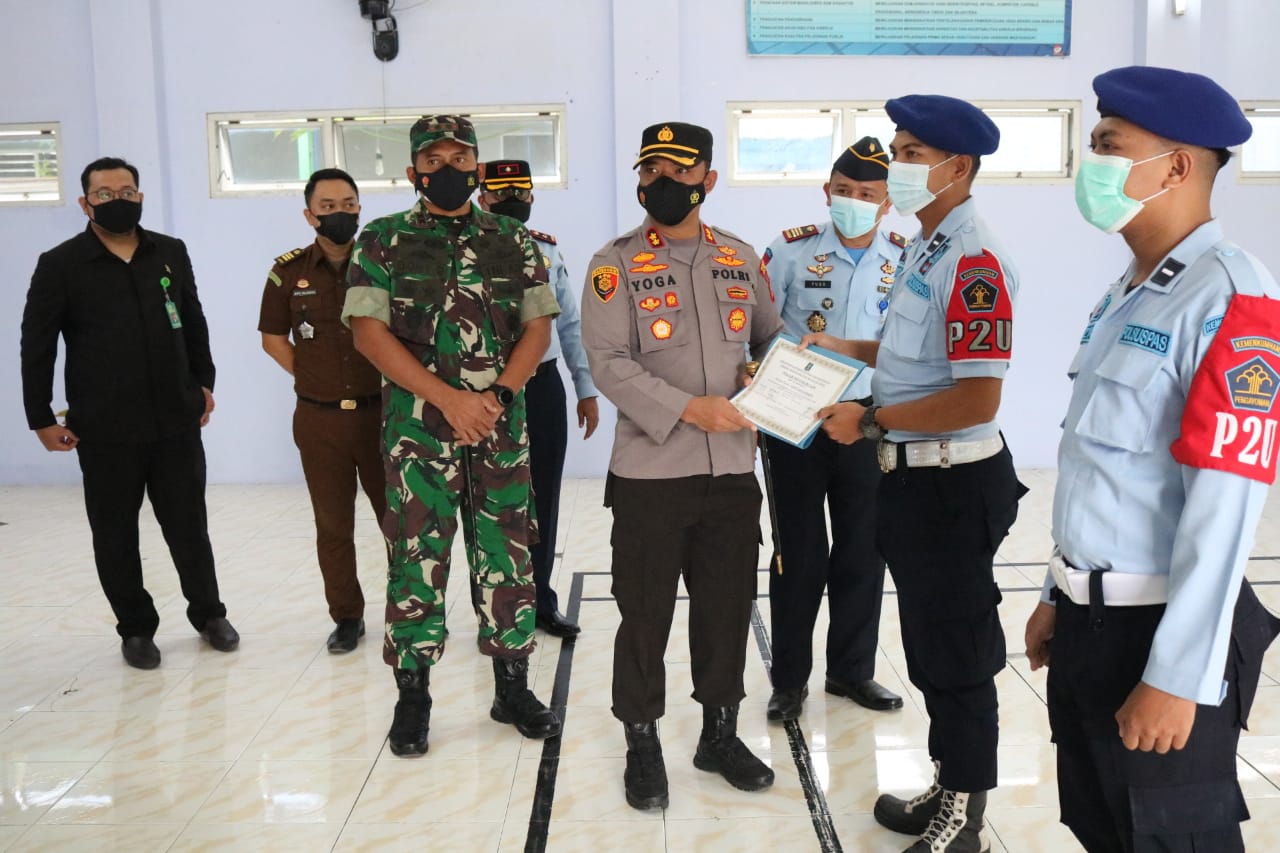 Luwuk.today, Kapolres Banggai AKBP Yoga Priyahutama SH, SIK, MH, memberikan penghargaan kepada petugas Lembaga Pemasyarakatan (Lapas) Kelas IIB Luwuk yang telah berhasil menggagalkan masuknya barang terlarang masuk ke dalam Lapas, Senin (10/1/2022).