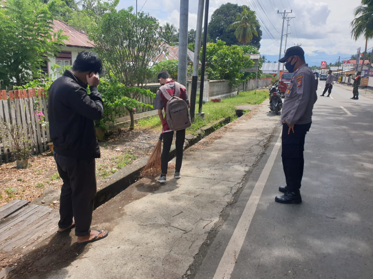 Gara-gara Tak Pakai Masker, Belasan Warga Bunta Dihukum Bersihkan Jalan
