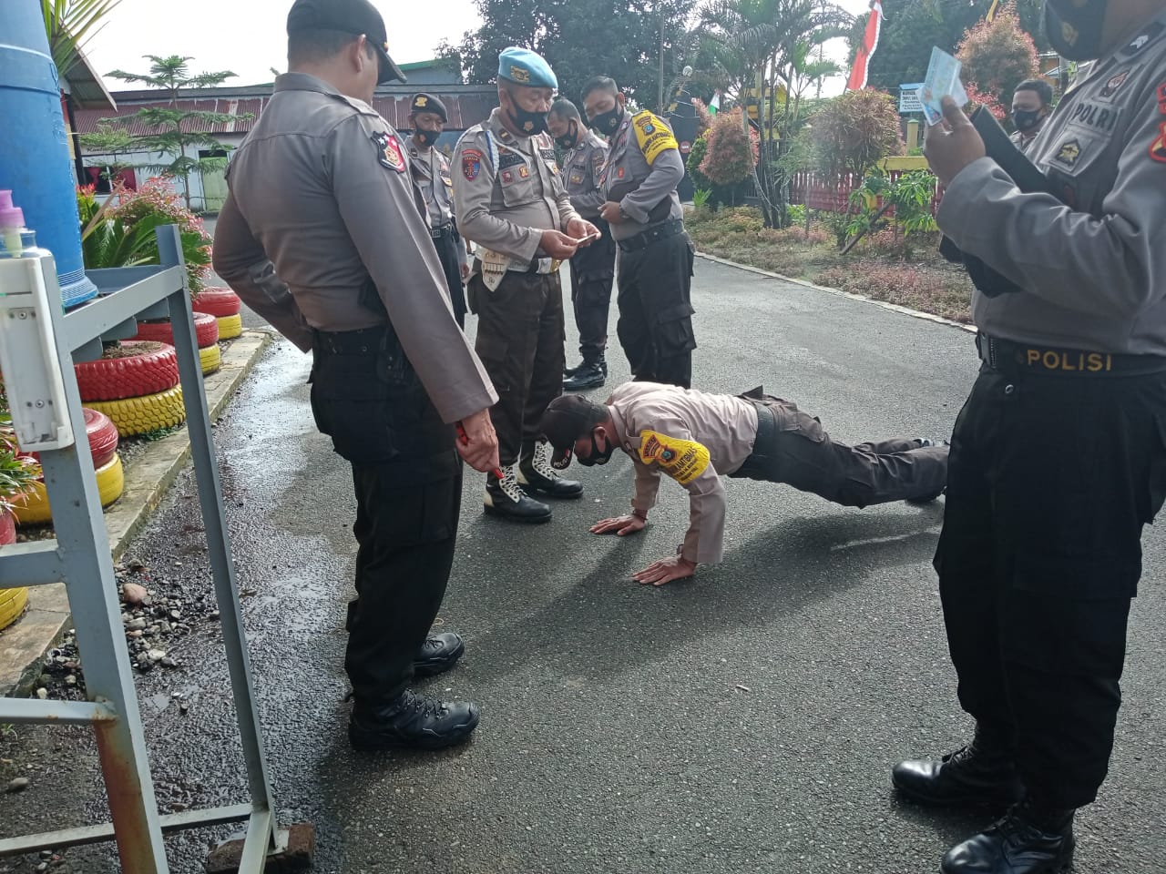 “Kami berikan tindakan disiplin berupa push up bagi personel yang tidak memabawa kelengkapan diri dan menggunakan gampol sesuai ketentuan,” kata Iptu Candra.