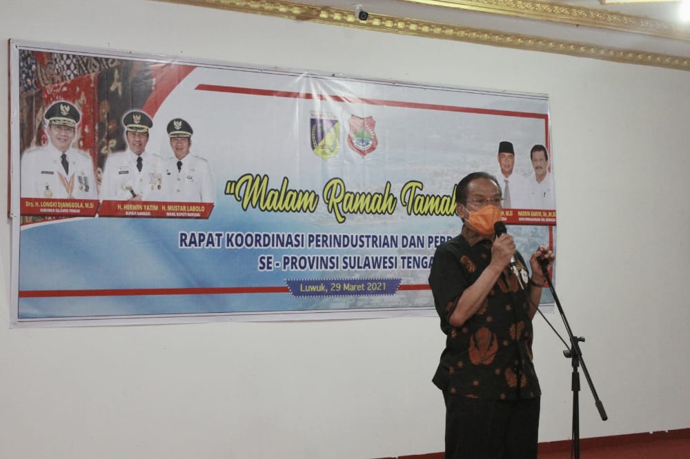 Luwuk.today, Gubernur Drs. H. Longki Djanggola, M.Si menghadiri acara ramah tamah peserta rakor perindustrian dan perdagangan (perindag) se Provinsi Sulawesi Tengah Tahun 2021 di Luwuk, Senin malam (29/3).
