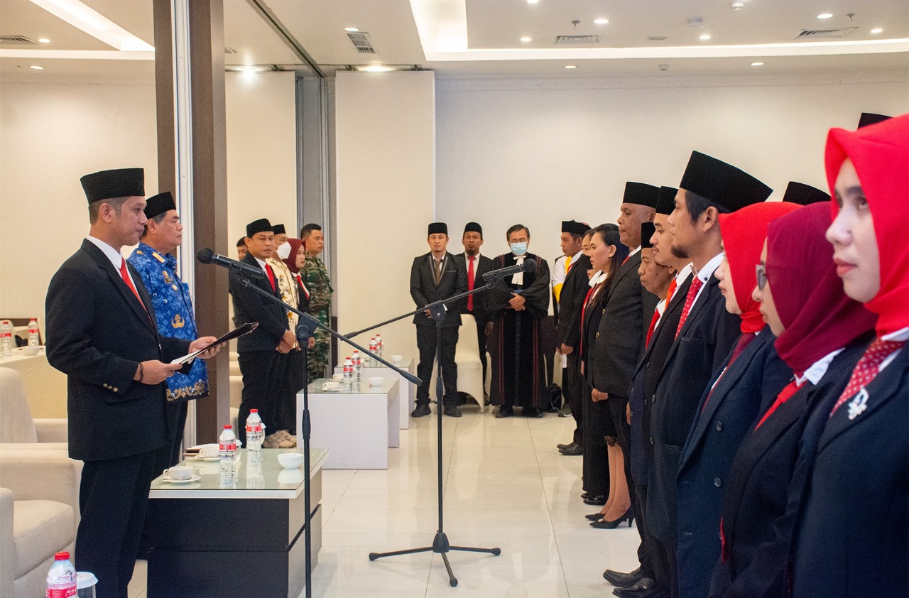 Luwuk.today, Sekretaris Daerah Kabupaten Banggai Ir. Abdullah, menghadiri kegiatan Pelantikan dan Pengambilan Sumpah/Janji Anggota Panwaslu Kecamatan se-Kabupaten Banggai di Hotel Santika Luwuk, Jumat (28/10/2022).