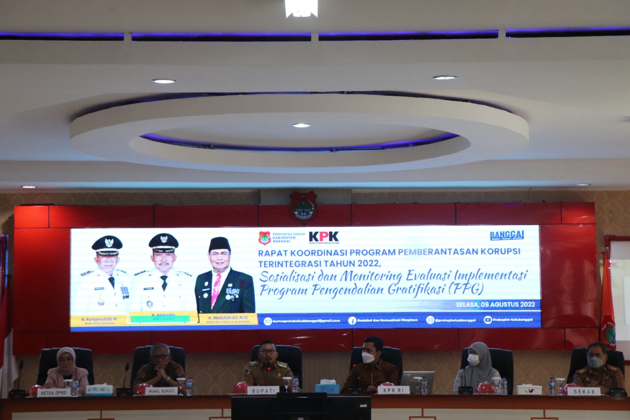 Luwuk.today, BANGGAI – Pemerintah Kabupaten (Pemkab) dan Dewan Perwakilan Rakyat Daerah (DPRD) Kabupaten Banggai mengikuti Rapat Koordinasi (Rakor) dengan perwakilan Komisi Pemberantasan Korupsi Republik Indonesia (KPK RI) bertempat di Ruang Rapat Umum Sekretariat Daerah, Kelurahan Tombang Permai, Kecamatan Luwuk Selatan, pada Selasa (9/8/22).