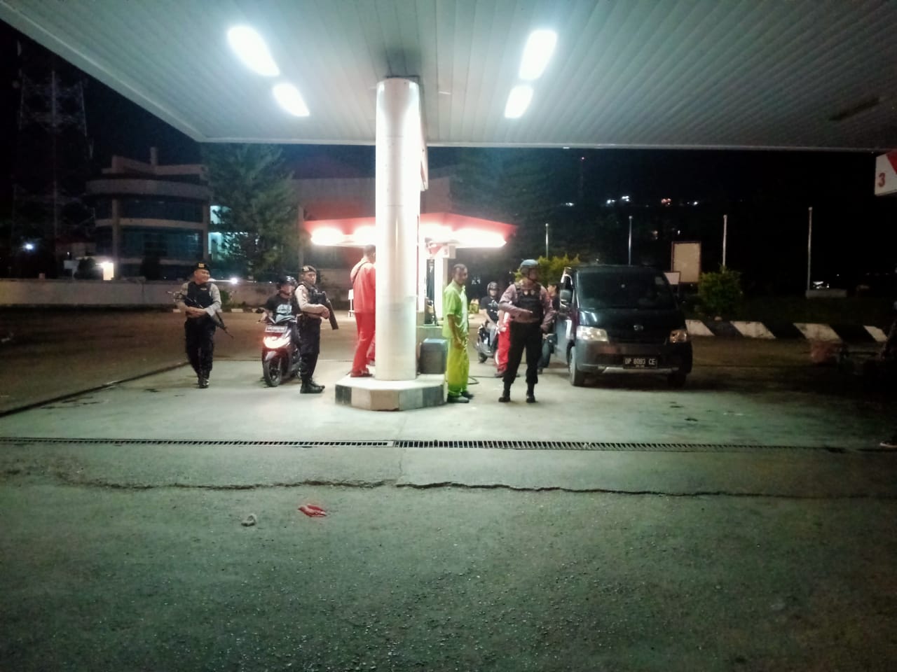 Luwuk.today, Satuan Samapta Polres Banggai melakukan patroli di sejumlah SPBU di wilayah Kota Luwuk, Kabupaten Banggai, Sabtu (3/8/2022).