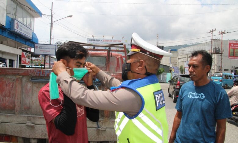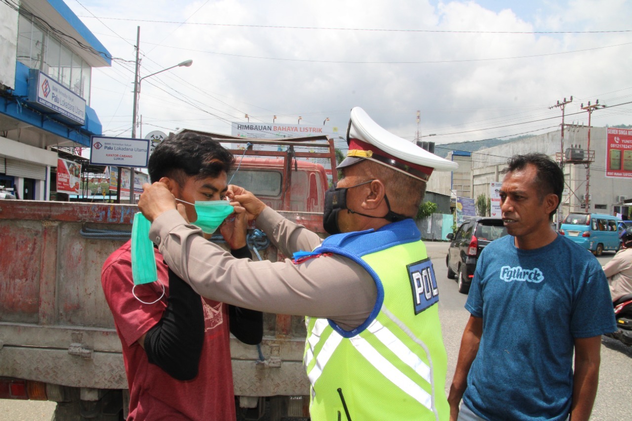 Hari Kedua Operasi Zebra Tinombala 2021, Polres Banggai Bagikan Masker dan Ratusan Brosur Imbauan Prokes