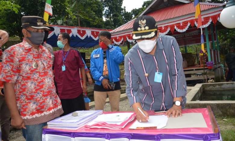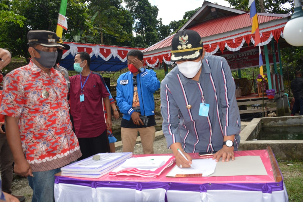 Usai sambutan Bupati, Acara dilanjutkan dengan penandatanganan MoU inovasi oleh Dasawisma Desa Dolom bersama Kapus PKM Balantak dan Bupati Banggai, kemudian Bupati Banggai meninjau kolam ikan air tawar Desa dan Taman Pinasa Desa Dolom. (Latoki/LT)